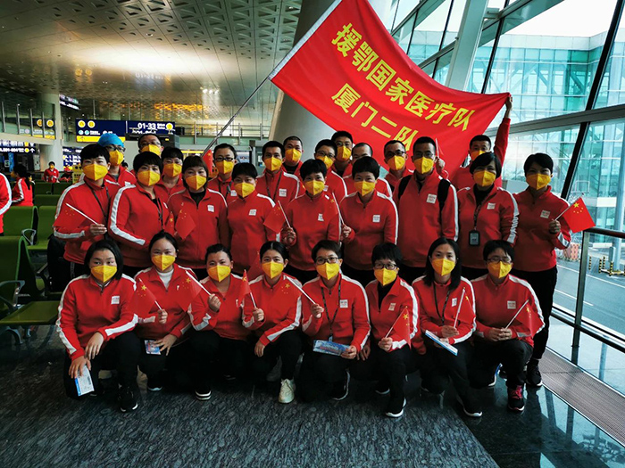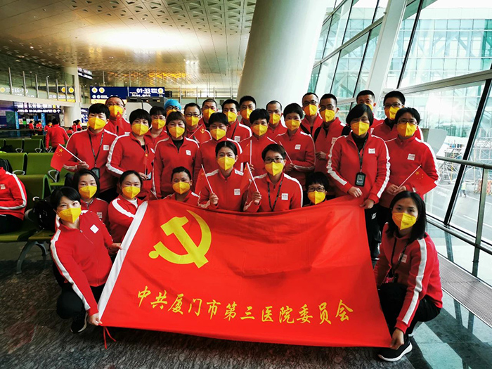 省委常委、市委书记胡昌升,市长庄稼汉,厦门大学党委书记张彦,校长张荣前往机场迎接医疗队。