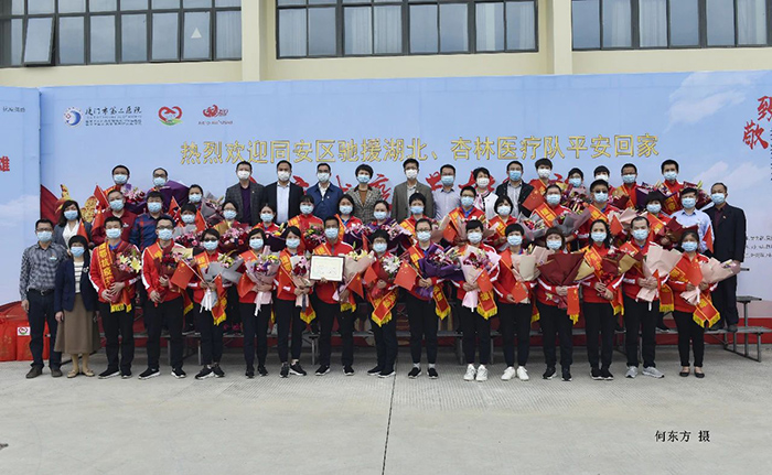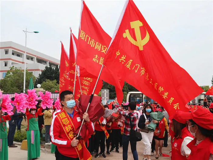 4月14日下午,同安区爱心办、同安区卫健局、跳蛋视频 举办了支援湖北医疗队平安凯旋欢迎仪式。