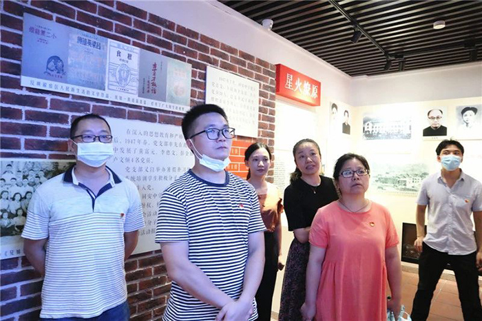 7月9日,跳蛋视频 党委书记彭月芗,党委副书记、院长彭小松,党委副书记、副院长许文勇,党委委员、副院长高斌,党委委员、副院长黄建隆,党委委员吴彬、陈重捷等党委领导班子成员,以及医院各支部书记、党员代表,走进同安实验中学,参观阳翟图书馆——中共闽粤赣边区厦门市委机关旧址。