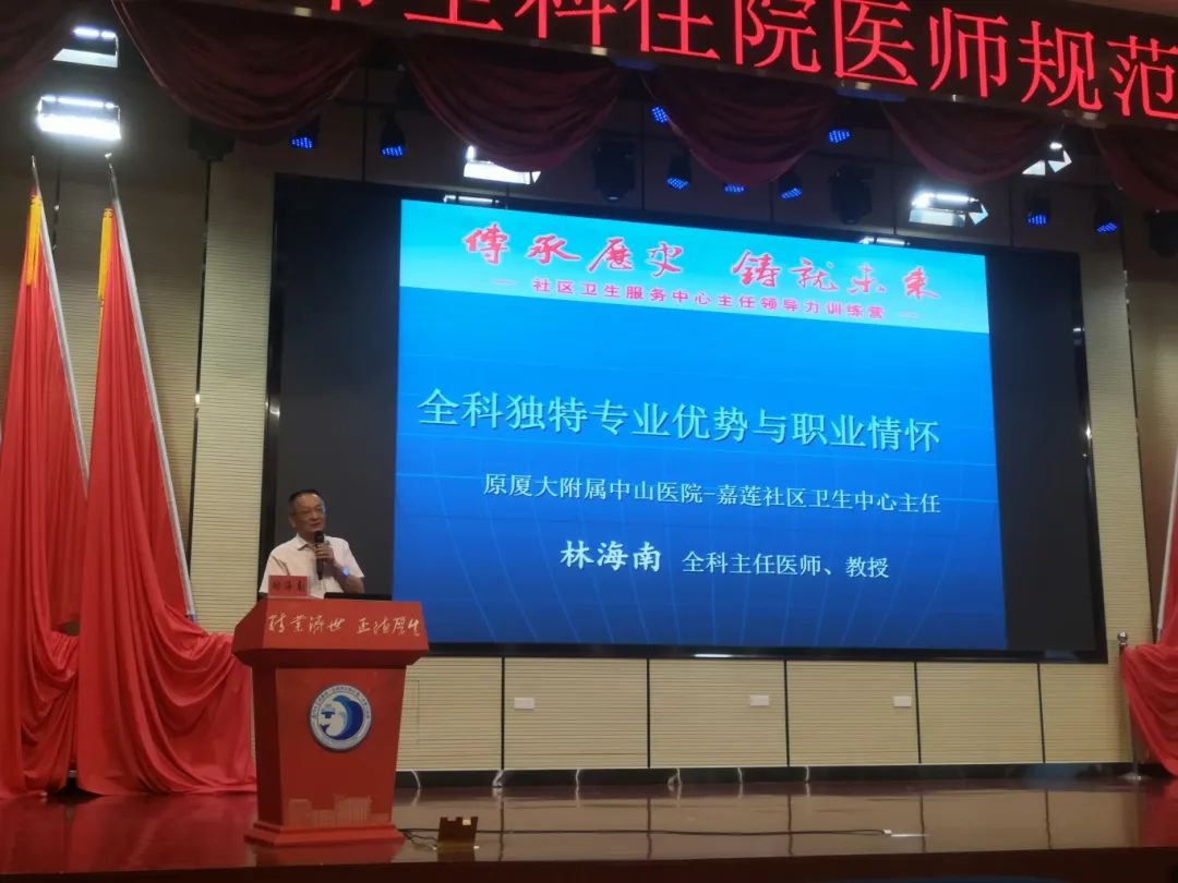 全科主任医师(三级)教授、厦门全科医师协会创会会长、厦门医学院客座教授林海南讲授《全科医生的独特专业优势与职业情怀》。