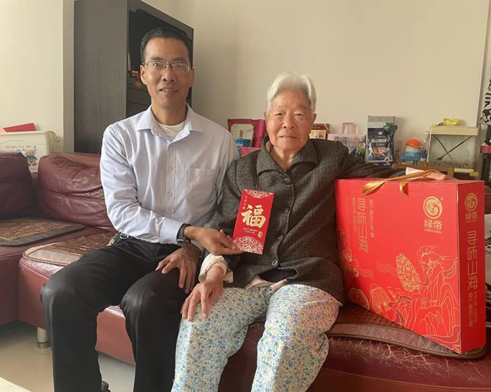 同时,仔细询问他们的近期生活与身体状况,了解需要解决的困难和问题,嘱咐他们保重身体。