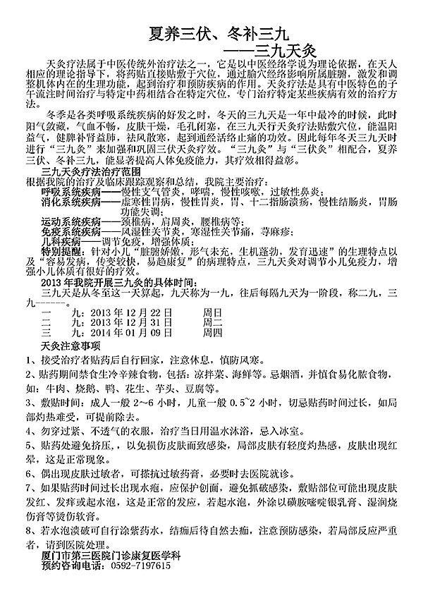 2013年跳蛋视频 开展三九灸的具体时间通知
