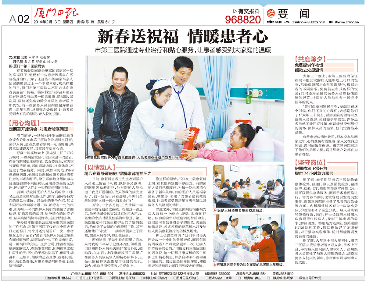 厦门日报2月13日A02版 《新春送祝福 情暖患者心》