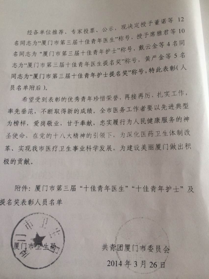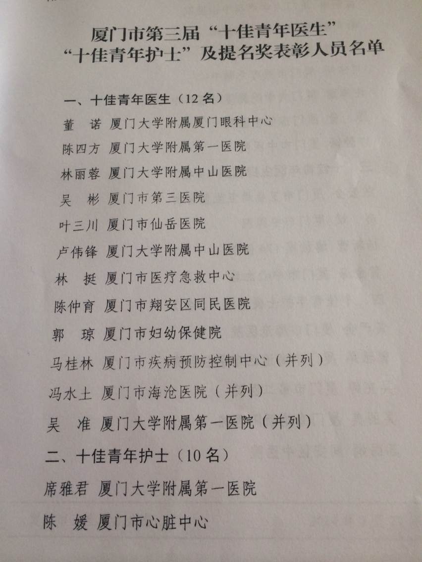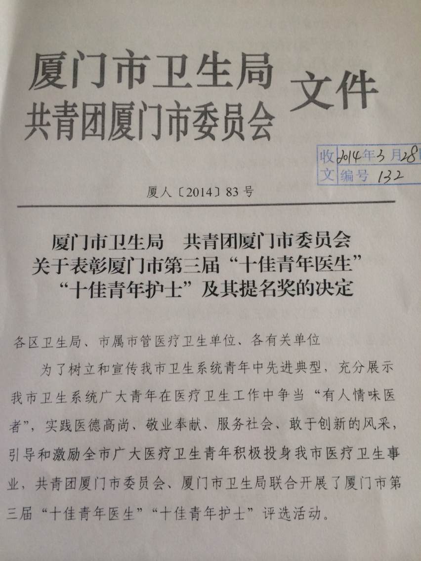 祝贺跳蛋视频 ICU副主任吴彬被厦门市卫生局、共青团厦门市委员会授予“厦门市第三屇十佳青年医生”殊荣