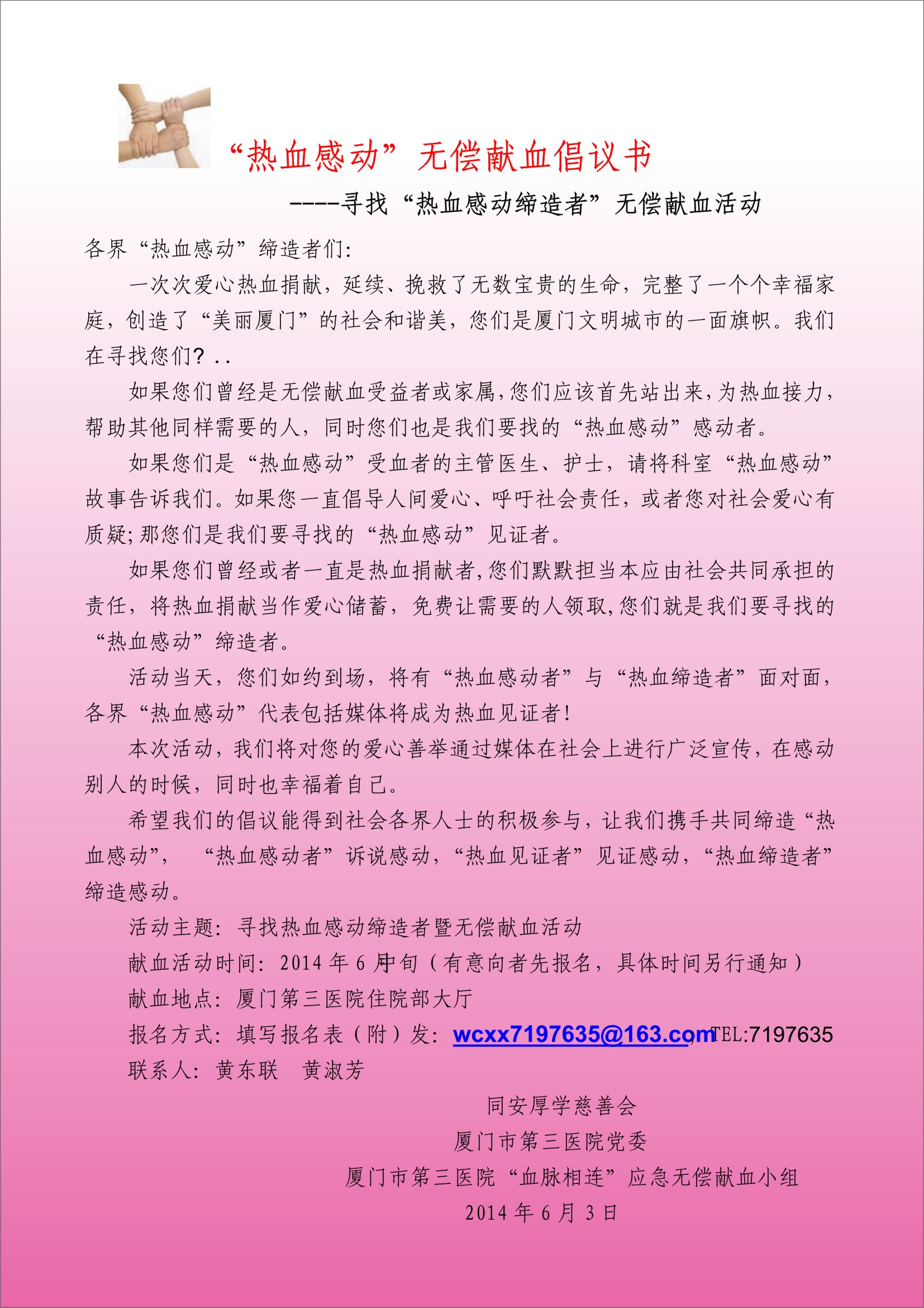 “热血感动”无偿献血倡议书
