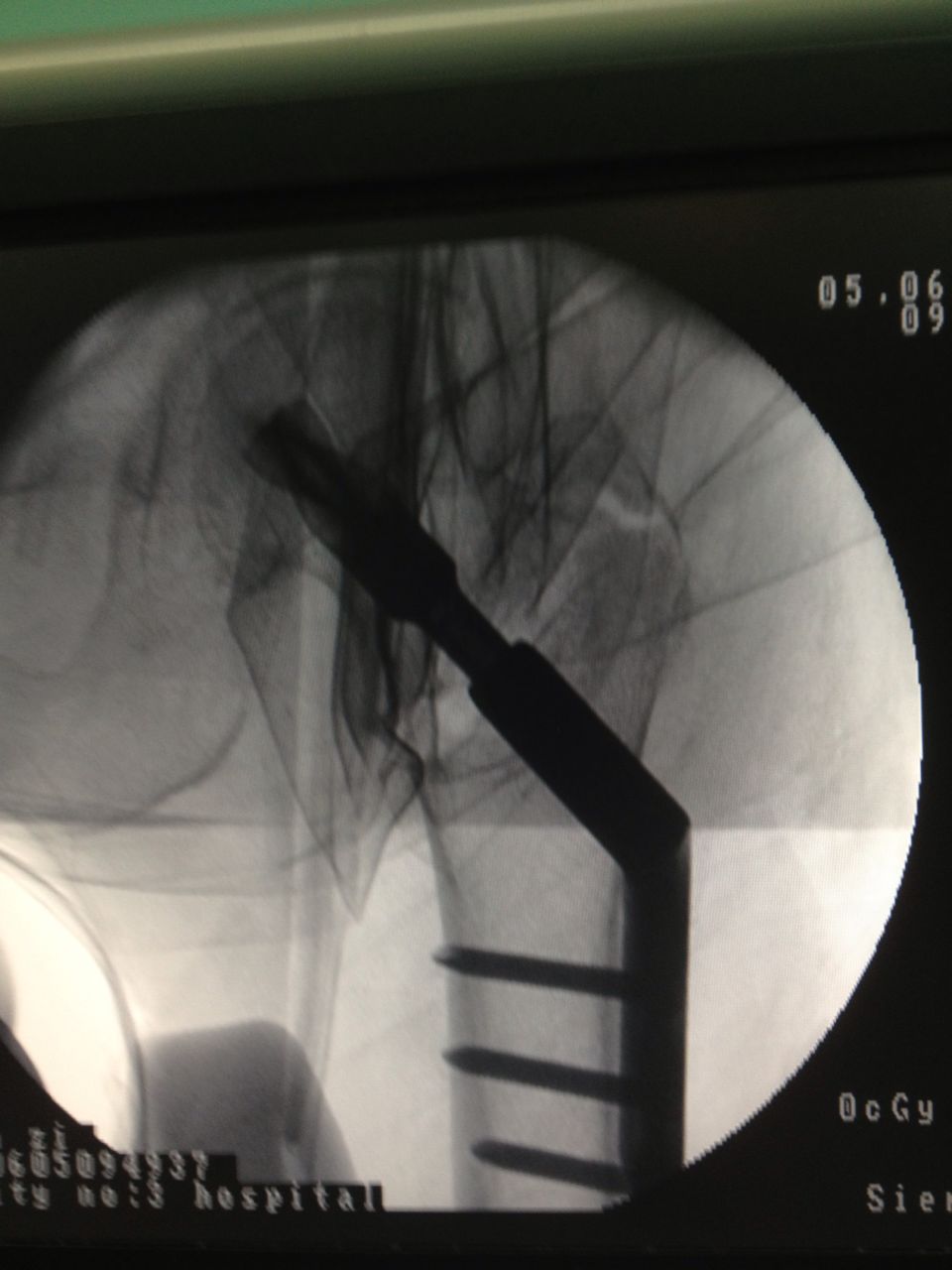 老人应选择何种治疗方案?第三医院骨科、心内科、麻醉科等多科专家组成的专家组认真仔细分析病情,决定采用髋关节微创植入内固定术。6月4日,老人接受手术,在手术牵引床上,通过C臂X光机透视,不切开骨折端闭合牵引复位,在老人骨折处复位到最佳状态时,刘忠国在骨折处开出5公分的口进行螺旋刀片动力髋固定,最大程度减少手术损伤,促进骨折端提早愈合。