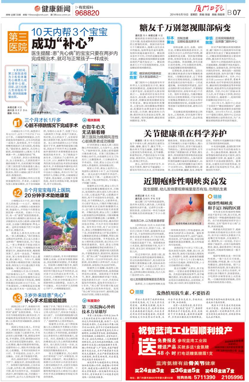 厦门第三医院低体重儿“补心”手术享誉八闽