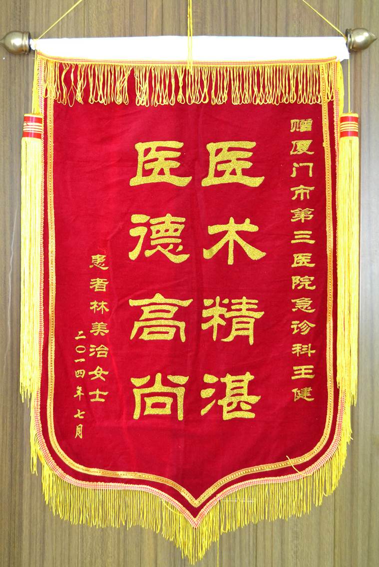 第三医院急诊科主任王健技术真高!患者林美治,女,57岁,一个月前以急忙腰疼伴跛行一周到第三医院就诊。原于外面多家医院看过,均诊断为椎间盘突出症,伴右膝半月板损伤,手术费至少5至10万。第三医院接诊的王主任考虑到患者家庭较困难,且半月板损伤1至2度,可以先保守治疗,即予骶管封闭加关节腔注射阿尔治,3周后林女士症状消失,总共花了约900元,林女士非常感激,临出院前赠送锦旗一面。