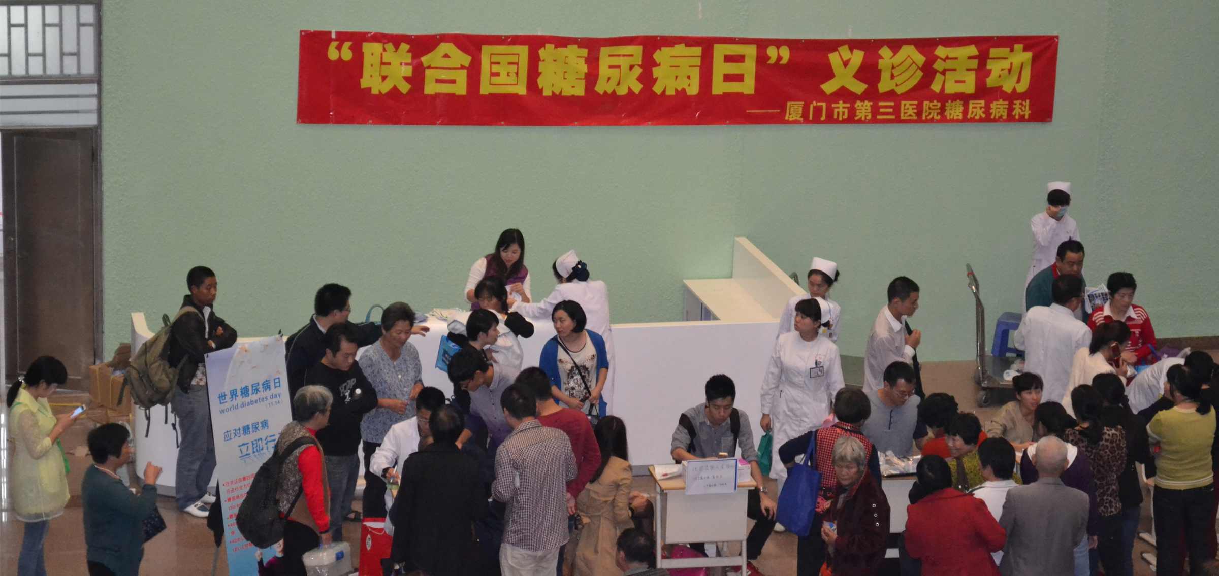 2014年11月14日是“联合国糖尿病日”,今年的主题是“健康饮食与糖尿病”。为唤起群众对糖尿病防治及教育的重视,懂得更多的防控知识,今日下午,跳蛋视频 在门诊大厅开展“糖尿病日”义诊活动,向群众介绍如何防控糖尿病。