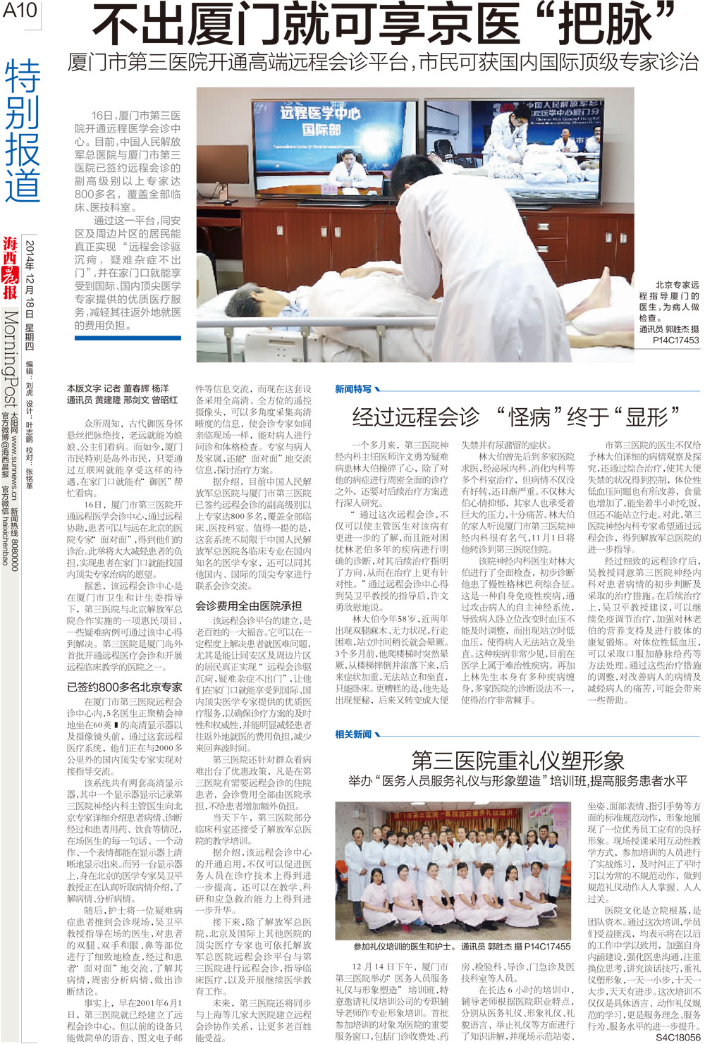 据悉,第三医院开通这套高端设备既是厦门首批开通远程会诊的医院之一,也是全市第一家开展远程临床教学的三级医院。