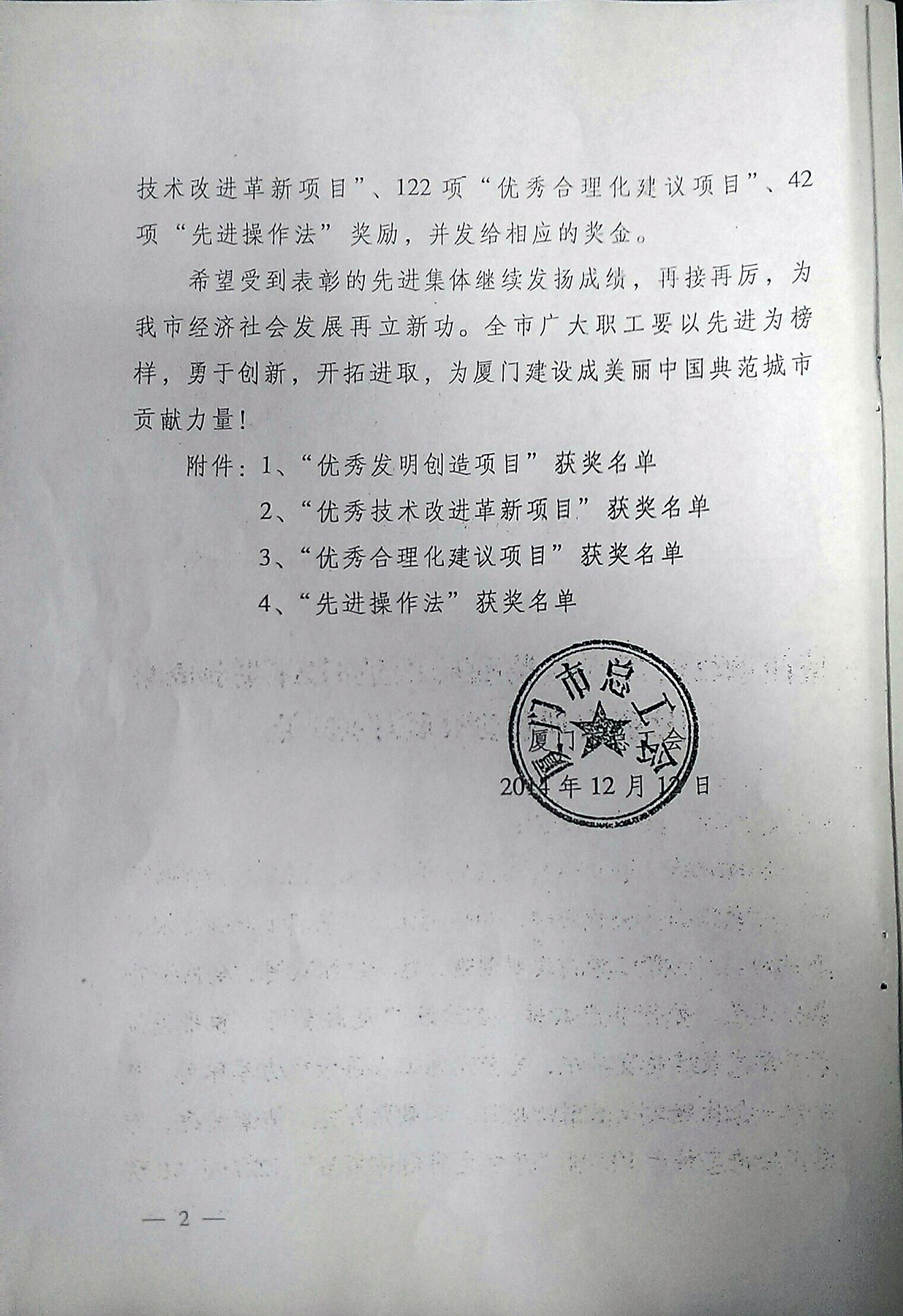 跳蛋视频 呼吸二科申报的“急诊经支气管镜一次置入二根新型双腔微导管治疗肺大咯血临床研究”项目被厦门市总工会授予“优秀技术改进革新项目”二等奖。