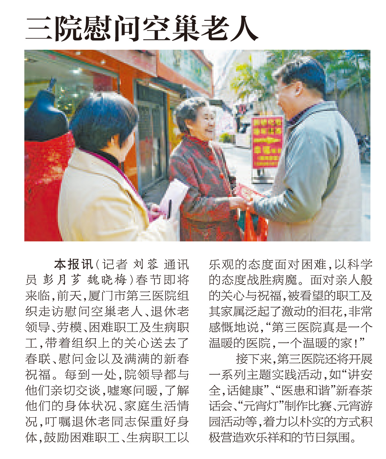 第三医院组织慰问空巢老人、退休老领导、劳模及生病职工,送去满满新春祝福