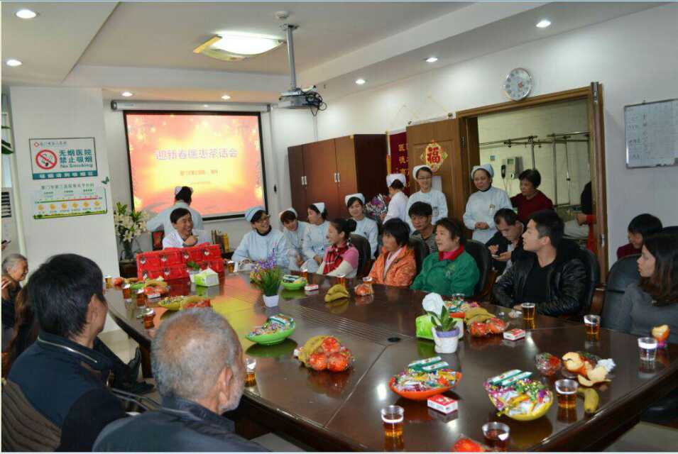 值此2015年新春佳节即将来临之际,跳蛋视频 陆续在各个科室举办“喜迎新春医患茶话会”,医务人员与病友欢聚一堂,讲安全,道家常,话健康,聆听患者和家属的意见和建议,提升服务品质。