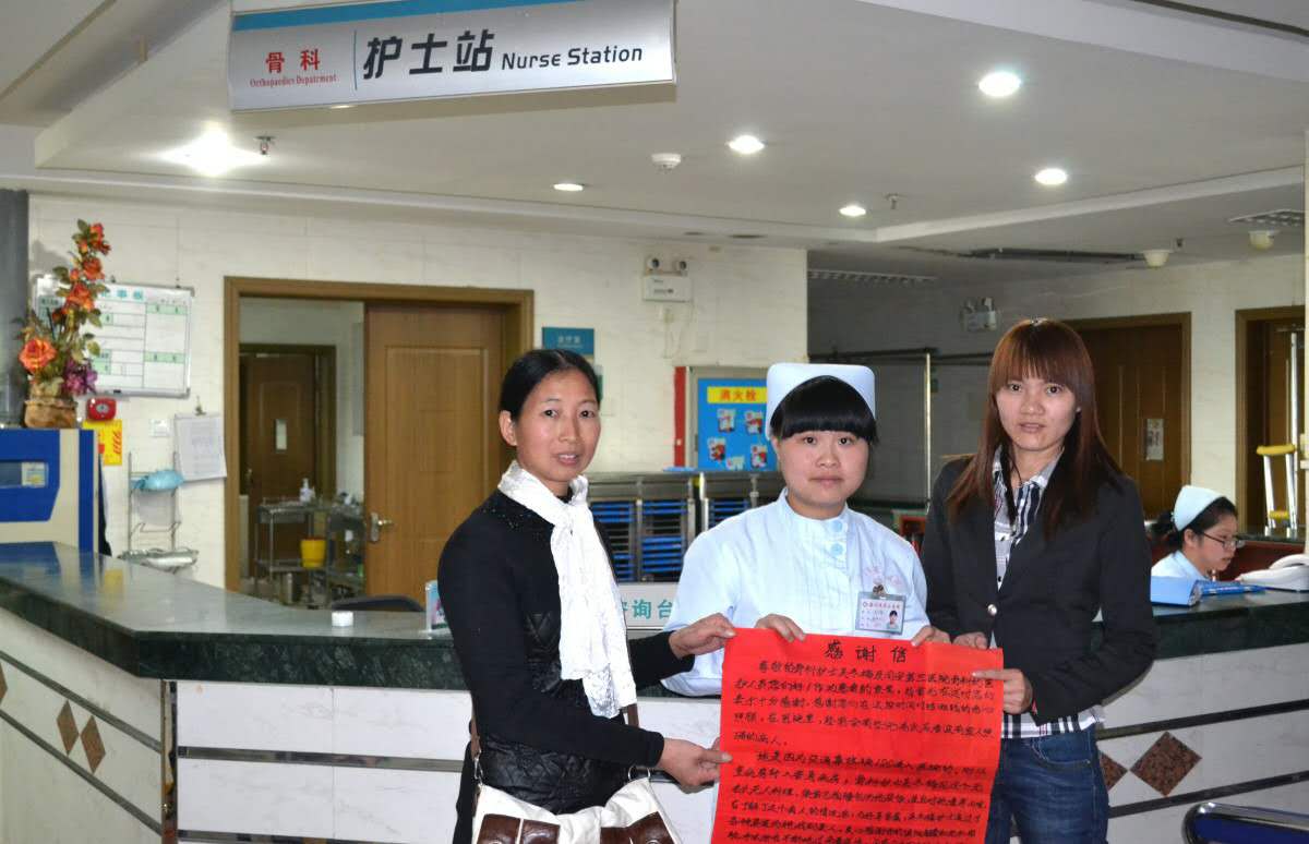 近日,跳蛋视频 收到一封感谢信,是骨科一名患者陈女士的家属写来的。信中写道:“非常感谢家人在治疗过程中遇到的每一位医护人员,虽然我们可能连你们的姓名都叫不出来,但正是有了你们默默无闻的奉献和爱心,才使得我们家人得以团聚,也让我们更深刻地体会到三院良好的医德医风,谢谢你们!”