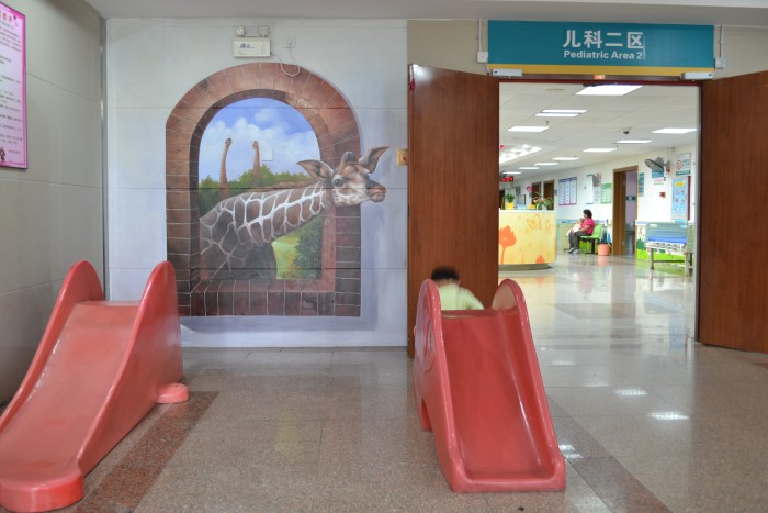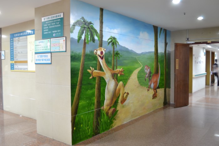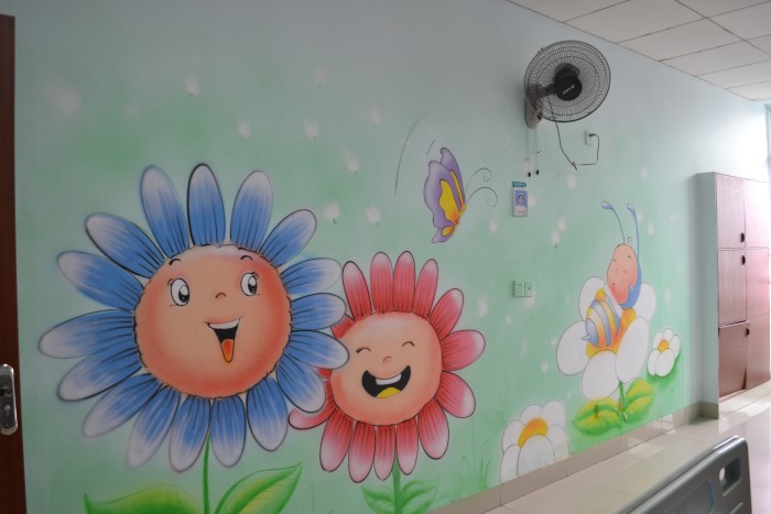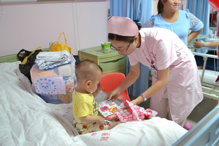 其实,市第三医院儿科对患儿的关怀已渗透在日常的每一个细节中:每一间病房都绘满了儿童喜欢的彩色卡通喷绘;每位医护人员的口袋都放着科室自费购买的玩具,以供诊疗时哄慰患儿;护士站长期配备一次性杯子及药袋,方便病人及家属取用;儿科每个病区都安排一名骨干护士在护士站作前台服务及健康宣教,随时为患者提供服务。