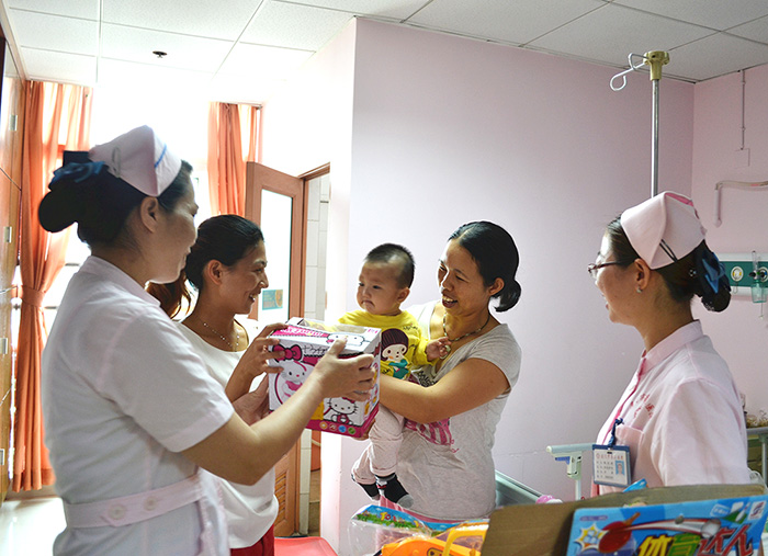 本报讯(记者 刘蓉 通讯员 彭月芗)儿科病区内,走廊和护士站挂满了五彩缤纷的气球,护士们带着笑容,推着堆满礼物的小车,亲手为每一位小朋友送上一份精致可爱的礼物,并祝福他们儿童节快乐、早日康复。病痛中的孩子们忘了刚刚才打完针、吃完药,欢欣雀跃,迫不及待地接过礼物,连原本忧心忡忡的家长们都挂上了开心的笑容,连声道谢。
