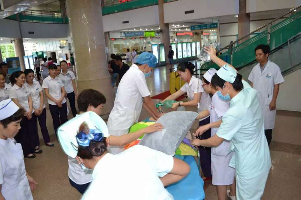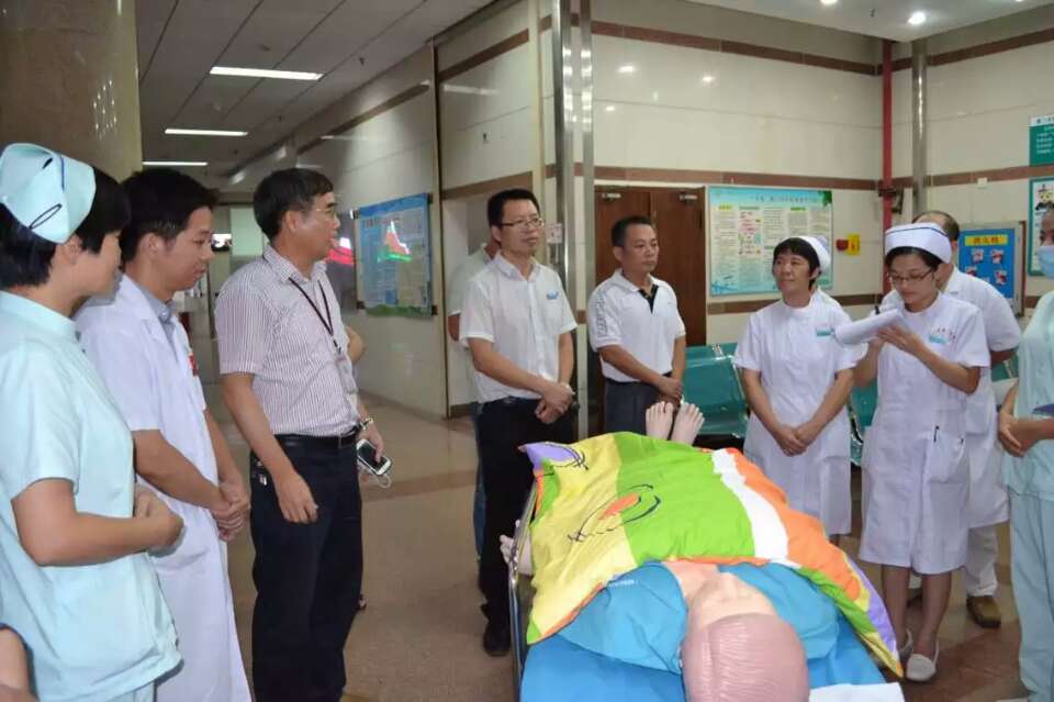 创三甲工作如火如荼地进行,为提升门诊应对突发事件的应急处置能力,提高医务人员急救技能,切实保障患者的生命安全, 2015年7月30日下午17时在门诊一楼内科通道进行了“门诊患者晕厥呼吸心跳骤停”的应急演练活动。总指导叶水龙副院长,现场指挥院长助理许文勇,医务部、护理部、门诊部、急诊科、客服中心、导诊等医务人员50余人参加了演练。
