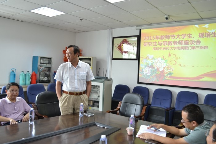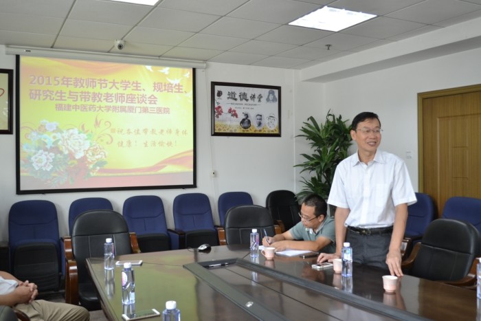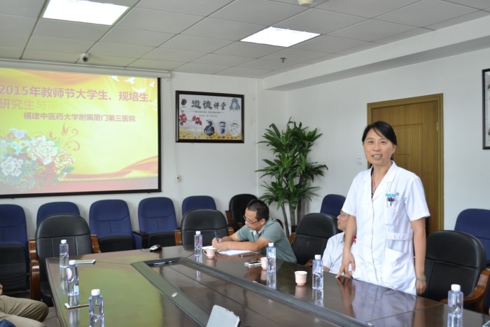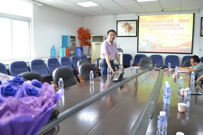 教师节当天,跳蛋视频 举行了2015年教师节大学生、规培生、研究生与带教老师座谈会。会议由叶水龙副院长主持,大学生代表、规培生代表、研究生代表纷纷结合各自学习的切身感悟积极发言,对医院所给予的关心和支持表示感谢。带教老师们也畅谈了一年来自己在医院各项政策支持下取得的成绩和收获,并对学员的学习成果给予了充分肯定,鼓励他们在今后的学习中取得更好的成绩。