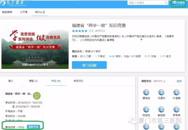 第三医院党员以优异成绩完成福建省党员e家学习知识测评