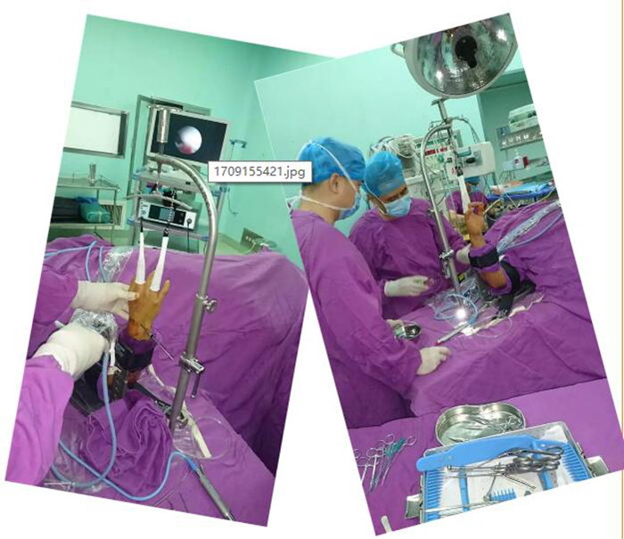 手足外科三院手足外科作为骨科范畴内的三级学科,不仅在断肢断指(趾)再植方面积累了丰富的临床经验,近年来也在微创技术上不断提升精细化手术含金量。该科在福建省率先引进全省首个小关节镜与关节牵引架系统,是省内最早开展腕关节镜及相关技术的医院。目前,三院手足外科已常态开展腕、踝关节镜手术近三十例,应用于腕关节、踝关节、掌指及跖趾关节等细小关节疑难手术。