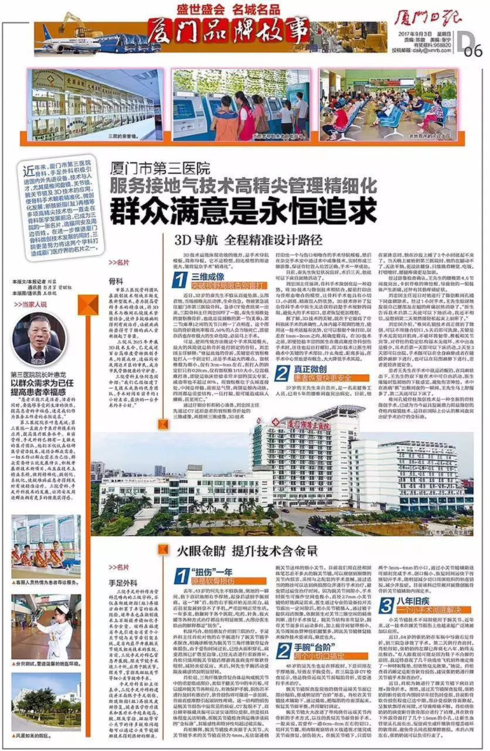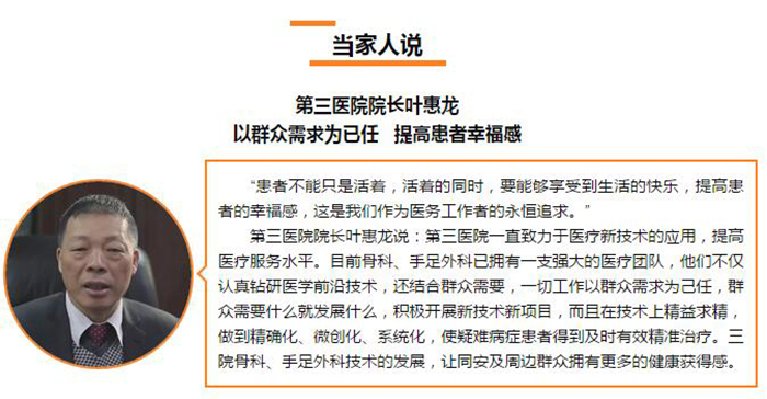 近年来,跳蛋视频 骨科、手足外科积极引进国内外先进设备、技术与人才,尤其是椎间盘镜、关节镜、腕关节镜及3D 技术的应用,使骨科手术朝着精准化、微创化发展;断肢断指(趾)再植等多项高精尖技术也一直走在骨科医学发展前沿,已成为三院的一张名片,造福同安及周边百姓。在进一步推进厦门骨科微创技术发展的同时,三院更是努力将这两个学科打造成厦门医疗界的名片之一。
