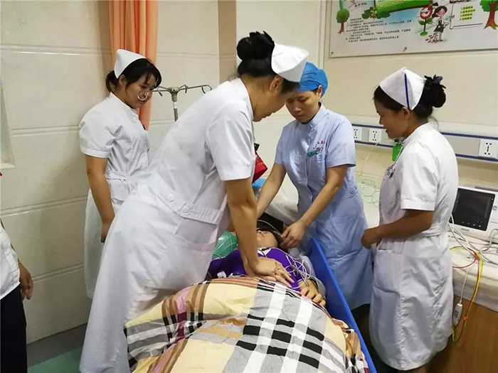 1、强化技能培训,提高应急能力。医院选派高年资的重症医学专家担任培训工作任务,医院举办6场急救技能培训班,分期分批对应急救治小组进行集中训练。如:心肺复苏、除颤仪、抗台风、中暑、生物安全、脊柱转运、心脏骤停急救等演练,进一步增强医护人员的应急抢救意识,提高应急处置能力,做到人人过关,确保紧急关头召之能来,来之能战。在此基础上,强化24名驻点医务人员、应急医务人员、医疗救治医务人员等急诊急救、医疗保障培训。组建大型会议会晤对外医疗保障外语小组,组织4场专业英语培训,提高沟通能力。