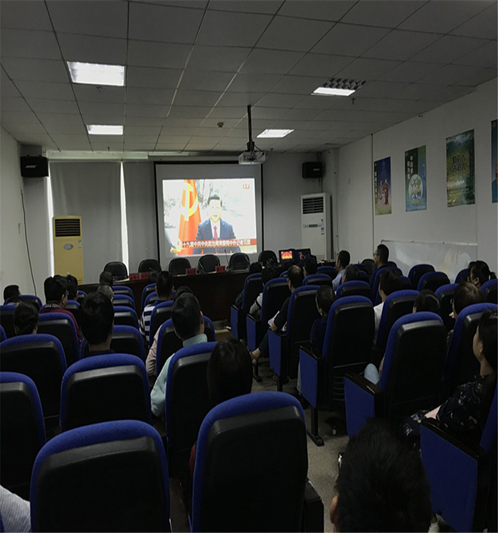 党委组织党员干部、职工等近百人集中收听收看中国共产党第十九次全国代表大会开幕式。医院党委成员、各支部委员、党员参加。除此之外,医院各党支部也结合实际情况,通过手机、电脑等多种形式组织无法到会的党员收听收看中国共产党第十九次全国代表大会盛况。观看结束后,大家通过支部微信群,现场座谈等形式纷纷发表感言。同时在腾讯网、新华网、新浪等多家网站进行跟贴评论,盛赞以习近平同志为核心的党中央团结带领全党全军全国各族人民走过的不平凡历程及取得的辉煌成就。