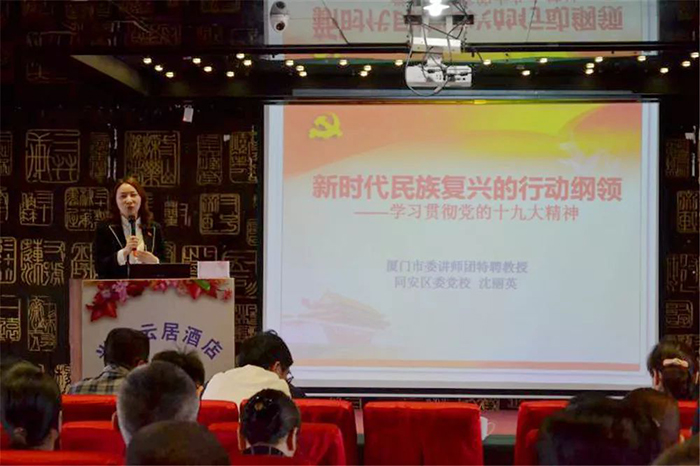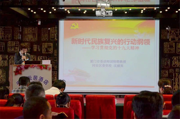 为认真学习领会、全面准确把握党的十九大精神,切实增强全体党员学习贯彻的自觉性和坚定性,2018年3月19日下午,市三院党委邀请厦门市委讲师团特聘教授、同安区委党校高级讲师沈丽英到跳蛋视频 作题为《新时代民族复兴的行动纲领——学习贯彻党的十九大精神》专题党课。医院党委成员、纪委成员、党员、入党积极分子、中层领导及重点岗位人员约260余人参加了会议。