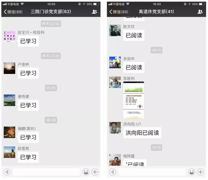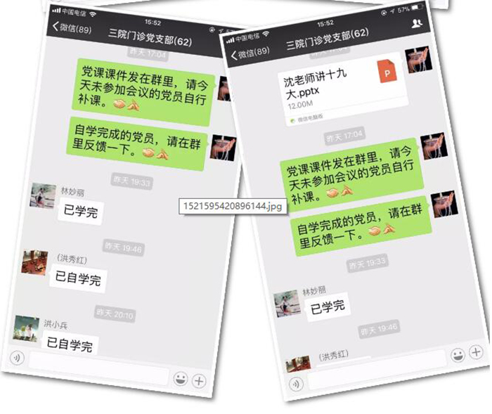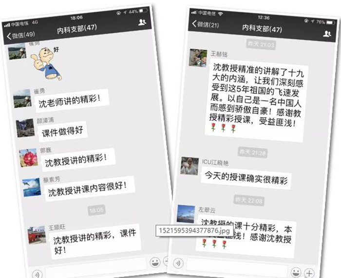 会后,党委书记彭月芗又及时将授课课件发到各支部的微信群里,让因值班无法到会的党员学习,大家反响热烈,纷纷给予盛赞及点评。