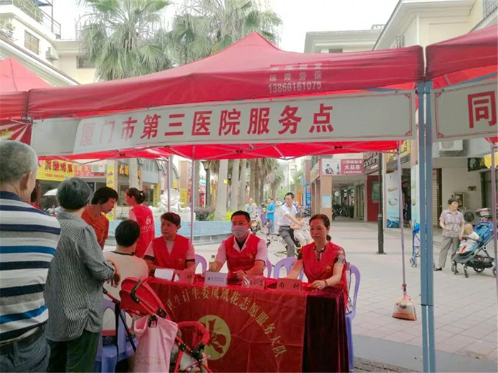 凤凰花开的五月,骄阳似火,热浪袭人。厦门市卫计委凤凰花志愿服务大队第三医院分队组织医疗专家冒着高温酷暑走村入户开展了一系列健康义诊活动,让老百姓在家门口就能享受到专家的医疗服务。
