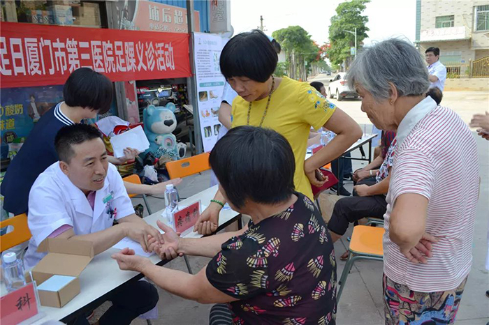 5月29日上午,外科党支部组织党员、医务人员在医院门诊大厅开展“全球爱足日”义诊咨询活动,为群众健康义诊,筛查足部疾病的同时,普及拇外翻、扁平足、踝关节扭伤、跟痛症、踝管综合症等足病知识。用专业的角度、专业的知识,帮助群众了解足踝疾病知识和保健方法,引导民众对足部的重视与避免认识误区。下午,还冒着炎炎烈日深入洪塘镇埔后村开展义诊咨询活动。义诊活动的现场人头攒动,专家们通过检查、了解病史对症开出处方,并耐心地指导群众服药方法及注意事项。医务人员免费为群众进行血压、血糖的测量,并宣传健康知识,传授保健技能,倡导健康生活等。对于一些行动不便的患者,还主动上门热情服务。由于大部分前来义诊的村民为中老年人,听力有些障碍,每个医务人员都耐心细致、不厌其烦的逐一解答他们提出的各种问题。