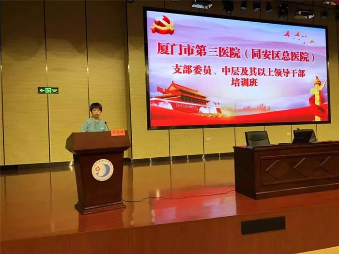 2019年是新中国成立70周年。同安区总医院是我市唯一的紧密型医联体改革试点,虽然总医院的改革发展还处于摸索、初步运行阶段,但我们将牢牢把握党和国家对医疗卫生事业单位的功能定位要求,切实增强“四个意识”,深入贯彻落实“实施健康中国战略”,以党建为引领,不断提升医疗卫生服务水平,让人民群众有更多的健康获得感。”