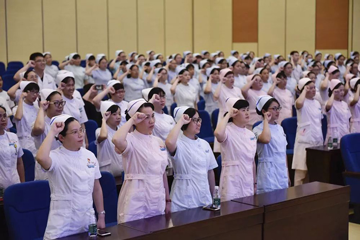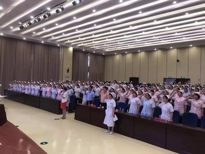 ▲彭月芗书记带领医务人员进行医徳宣誓
