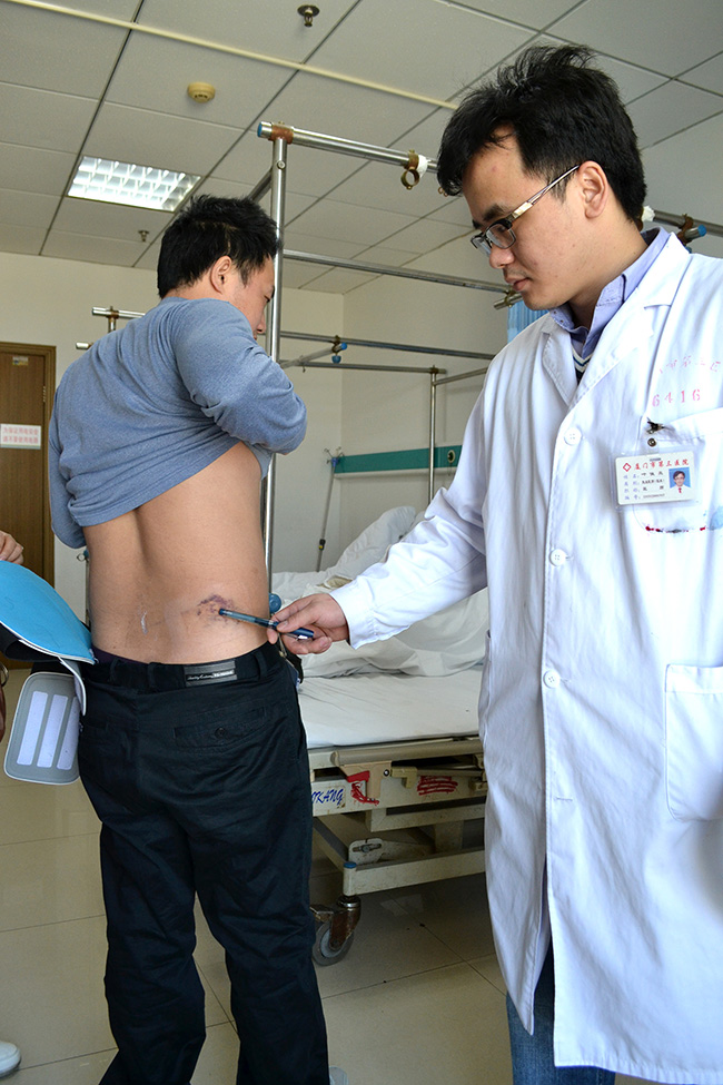 患者杨某曾因腰椎间盘突出于2006年在其他医院行椎间盘手术,因手术创伤大,恢复慢,效果不理想,近年腰椎间盘突出症复发。就诊于跳蛋视频 ,跳蛋视频 骨科刘忠国主任成功为他行“微创椎间盘突出切除术”,术后患者症状完全缓解,卧床6小时后即可下床活动。