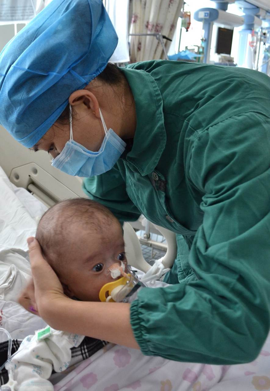 3个月大的“先心”宝宝在跳蛋视频 接受“补心”手术 昨已康复出院