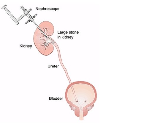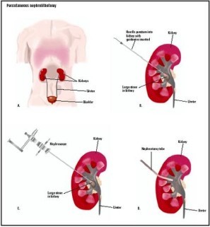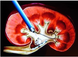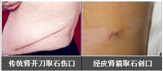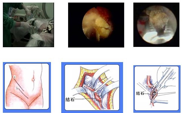 经皮肾镜下超声气压弹道混合动力碎石术:该项技术近年来发展较快,是肾脏及输尿管上段复杂结石治疗的一次革命,该技术避免患者腰部的大切口,仅需做一个肾穿刺造瘘,将肾镜引入肾内,直视下击碎结石,并将其吸出体外。其优点:创伤小,痛苦少,结石清除干净,具有可重复性。